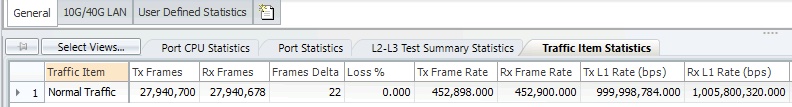 If we check on the Ixia traffic statistics for our production traffic, we can see a fair amount of packet loss has crept into our production network.