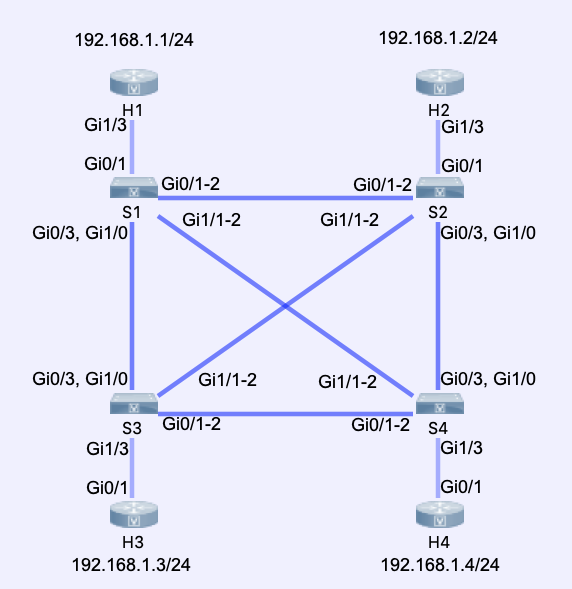 First, let’s check the current Spanning Tree state in VLAN 1 on S1. By default, S1 is the root bridge because it holds the lowest bridge address in the L2 domain.